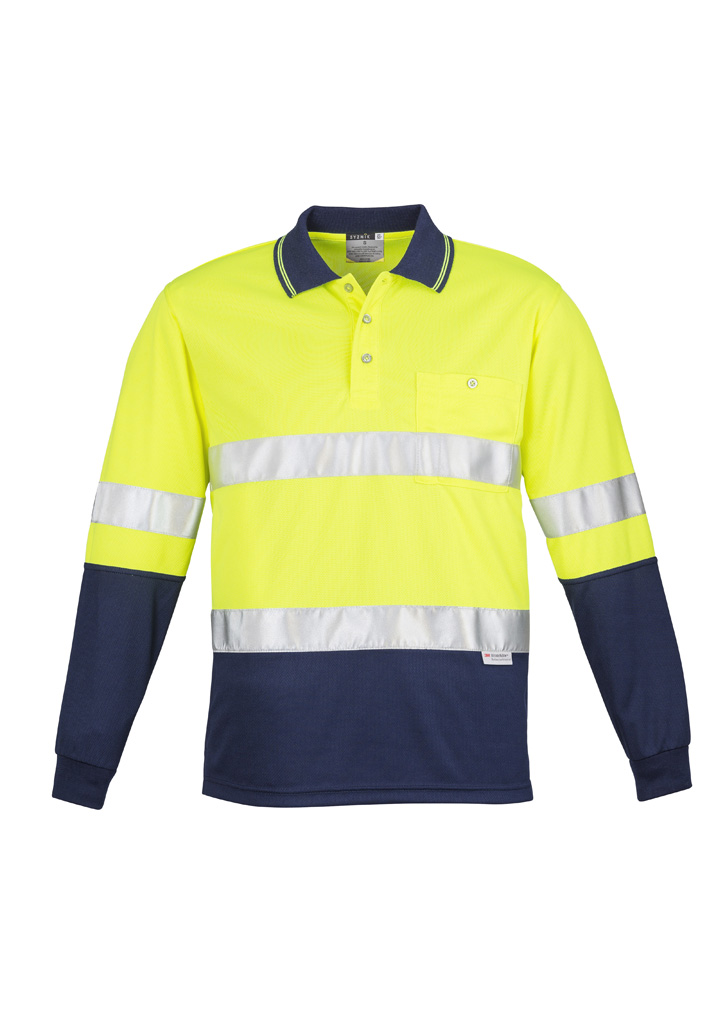 Mens Hi Vis Spliced Long Sleeve Polo - Hoop Taped